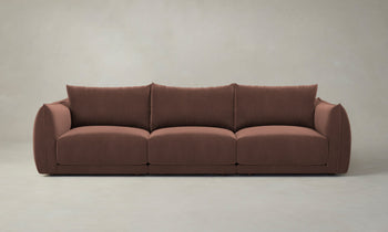 The Jones Sofa's low-lying, modular design recalls silhouettes from the 1970s. It has voluminous cushions and plush arms complete with flange seams for a tailored finish. Handcrafted in North Carolina.