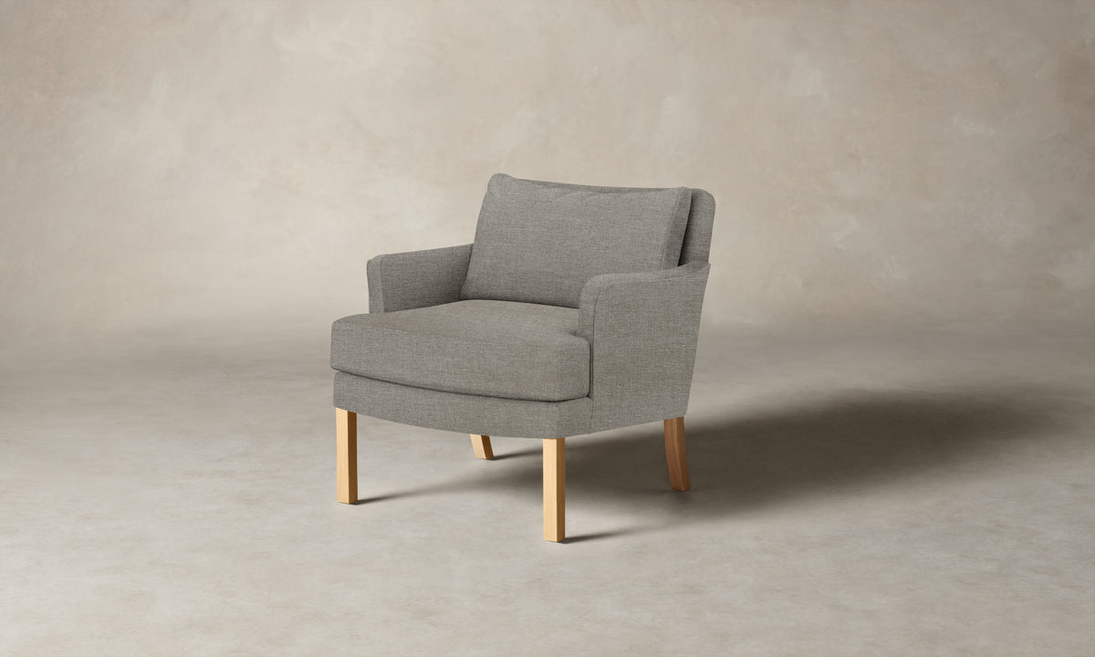 The Kaye Chair pays homage to mid-century Danish design with its simple form. Gently curved along the back and arms, it envelops the body in masterful upholstery and generous cushioning. Slender white oak legs lend the design a classic appeal. Handcrafted in North Carolina.