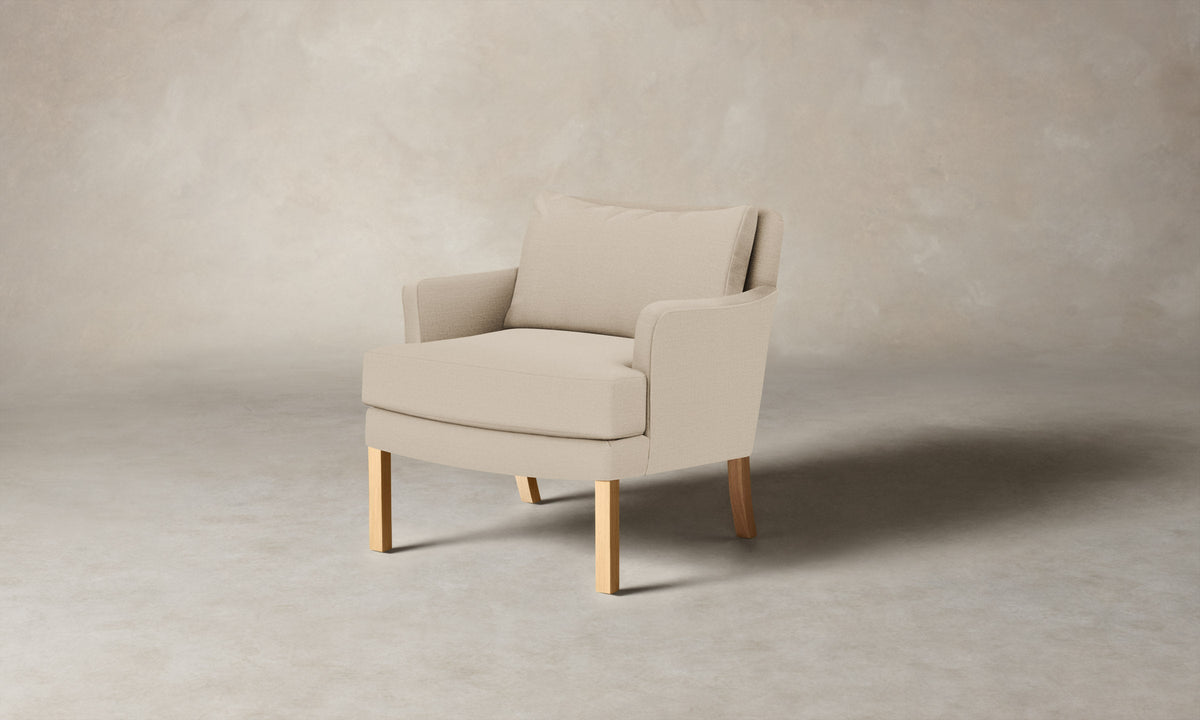The Kaye Chair pays homage to mid-century Danish design with its simple form. Gently curved along the back and arms, it envelops the body in masterful upholstery and generous cushioning. Slender white oak legs lend the design a classic appeal. Handcrafted in North Carolina.