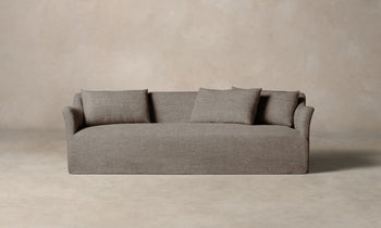 Cloaked in a beautifully draped slipcover, the Leonard Sofa is an embodiment of relaxed elegance. It has a flared frame traced with sloping lines that lend softness to the design. Handcrafted in North Carolina.
