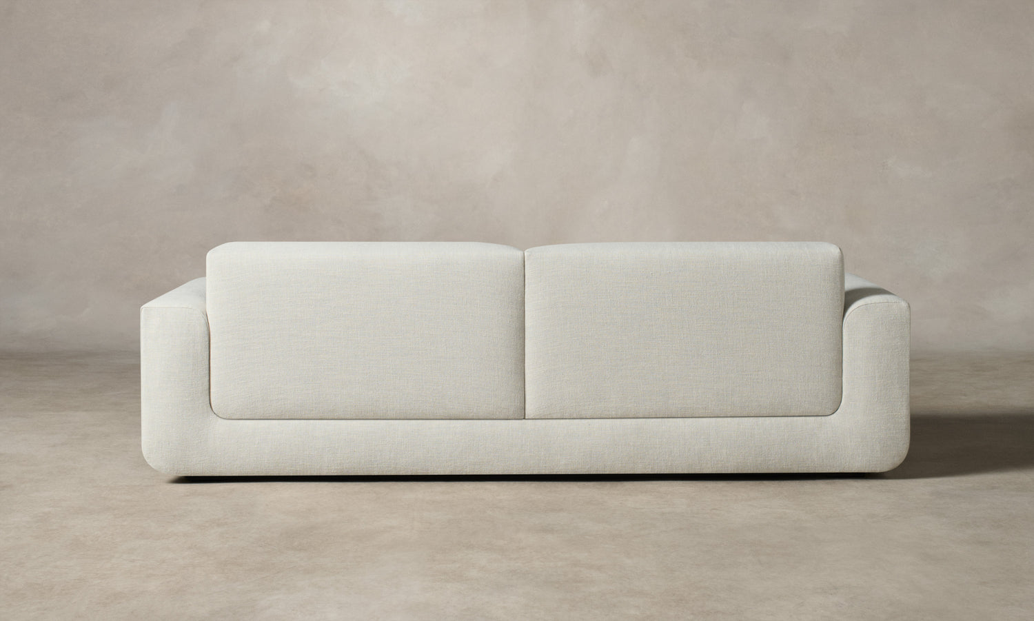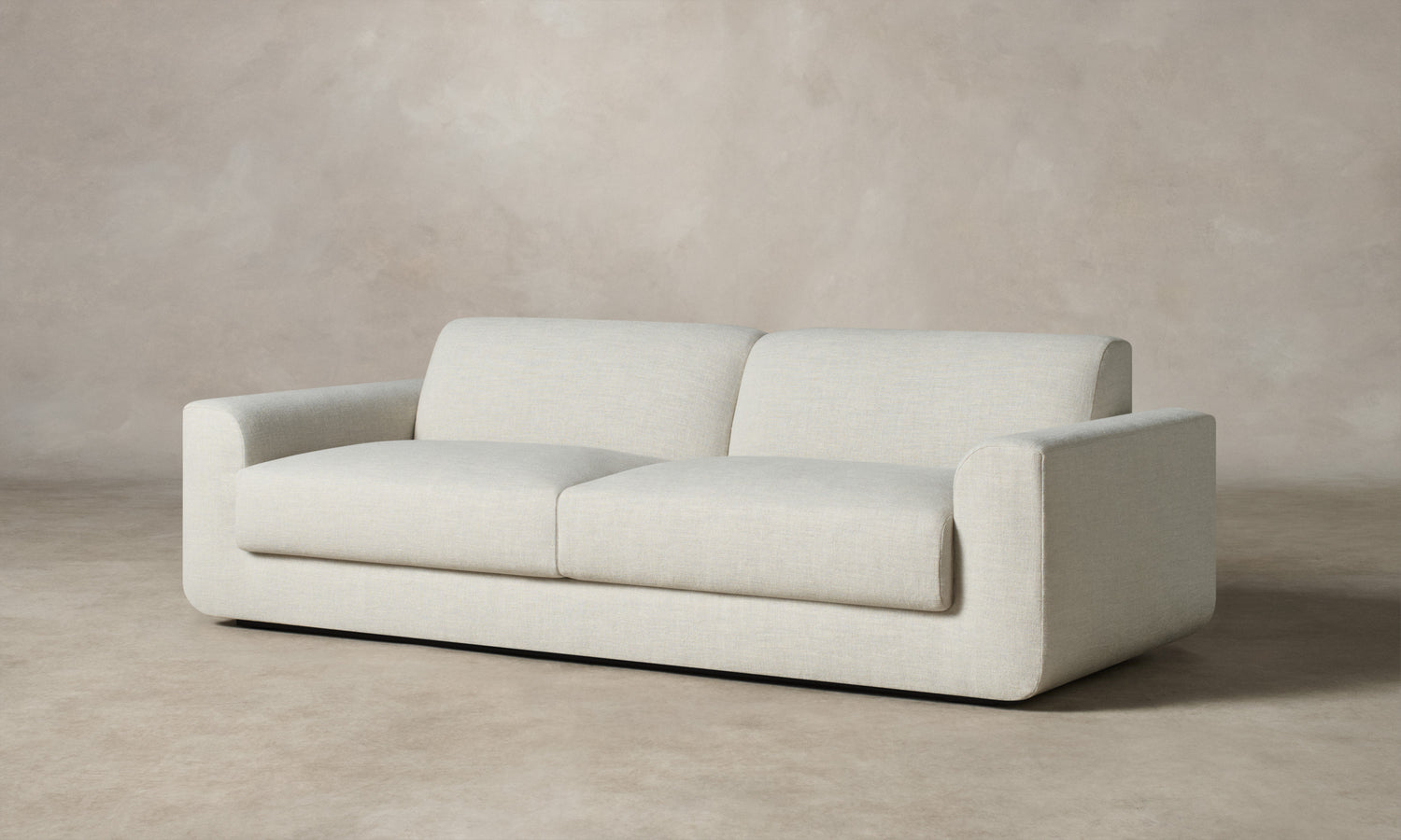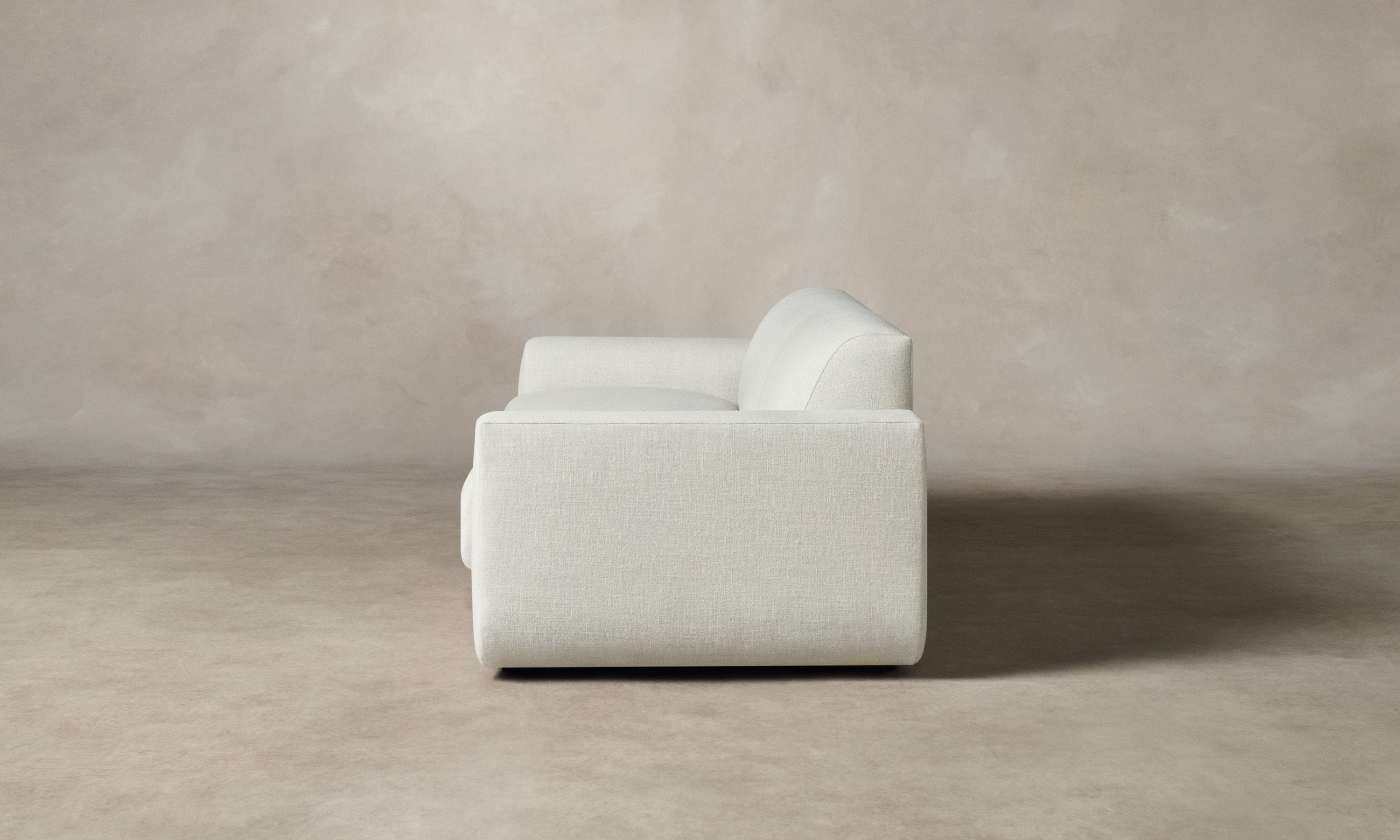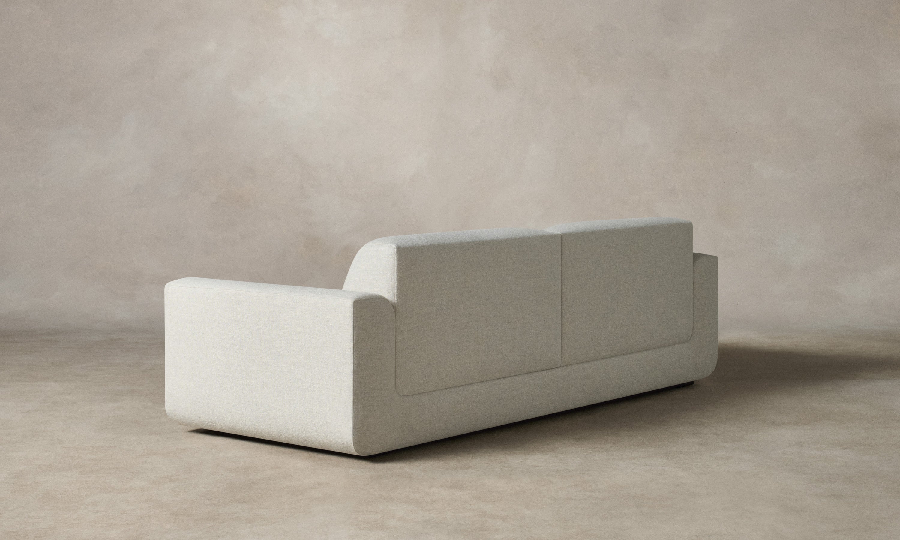 With weighty proportions and rounded curves, the Marcello Sofa evokes Italian modernist silhouettes from the 1970s. It features a deep, low-lying seat and soft cushions for enveloping comfort. Handcrafted in North Carolina.