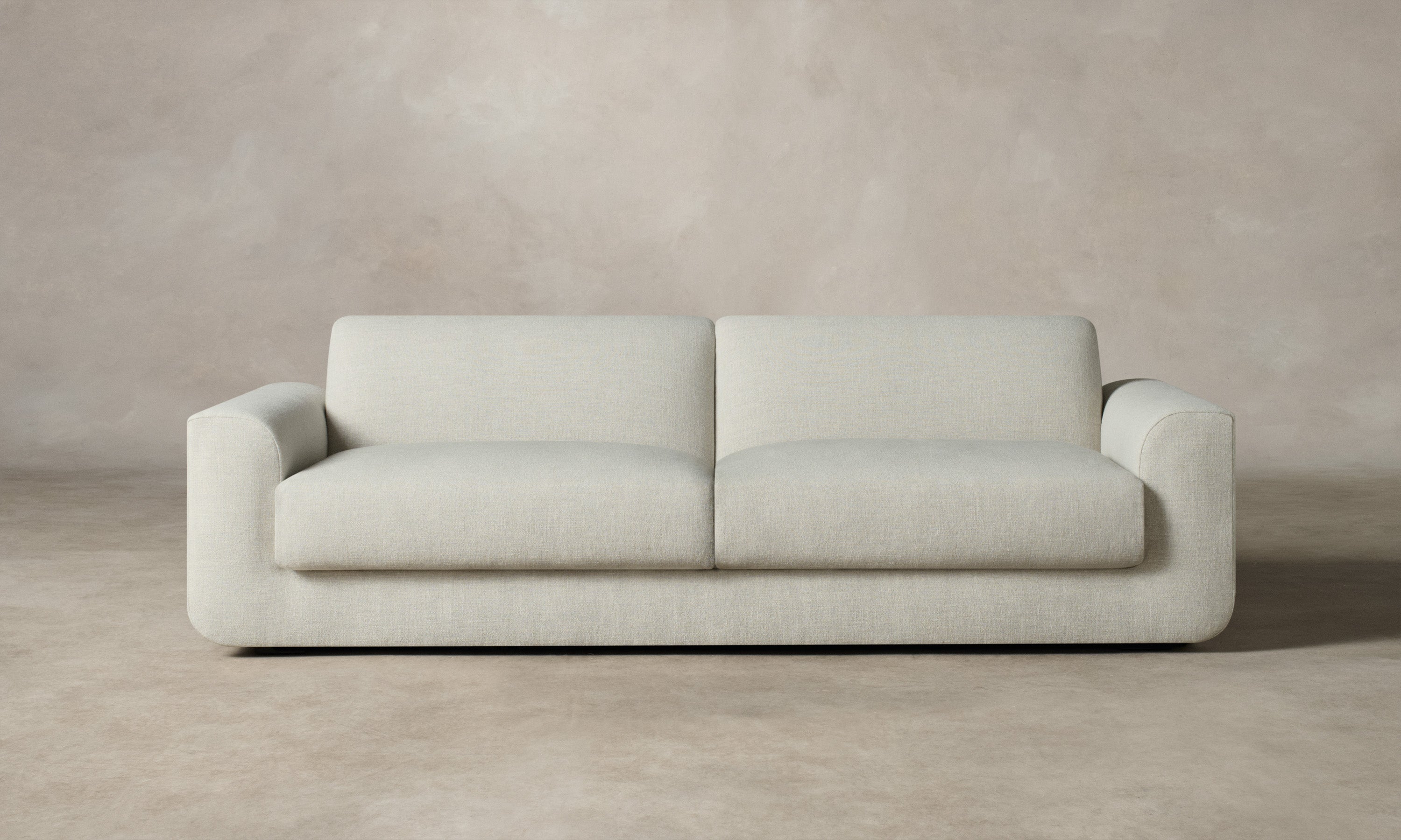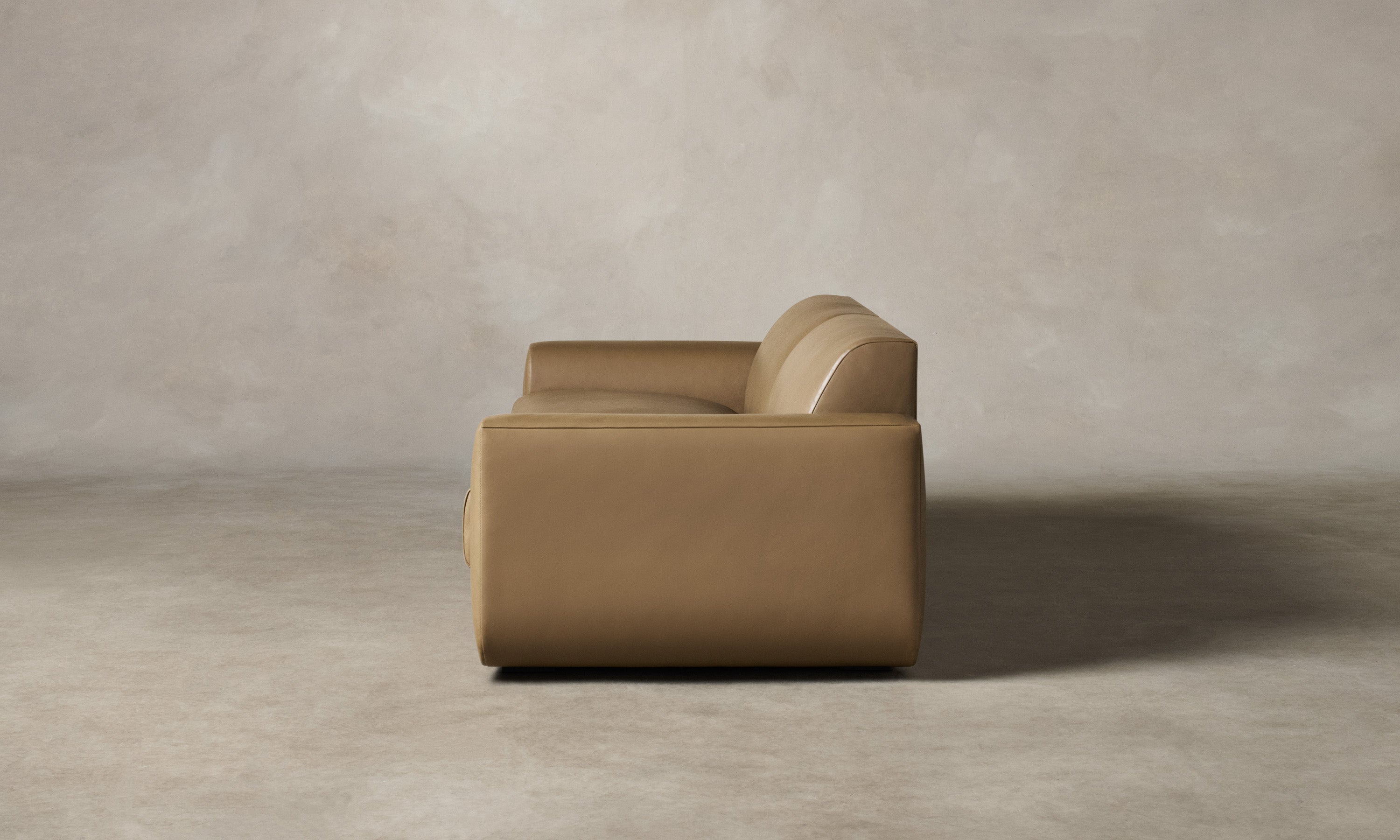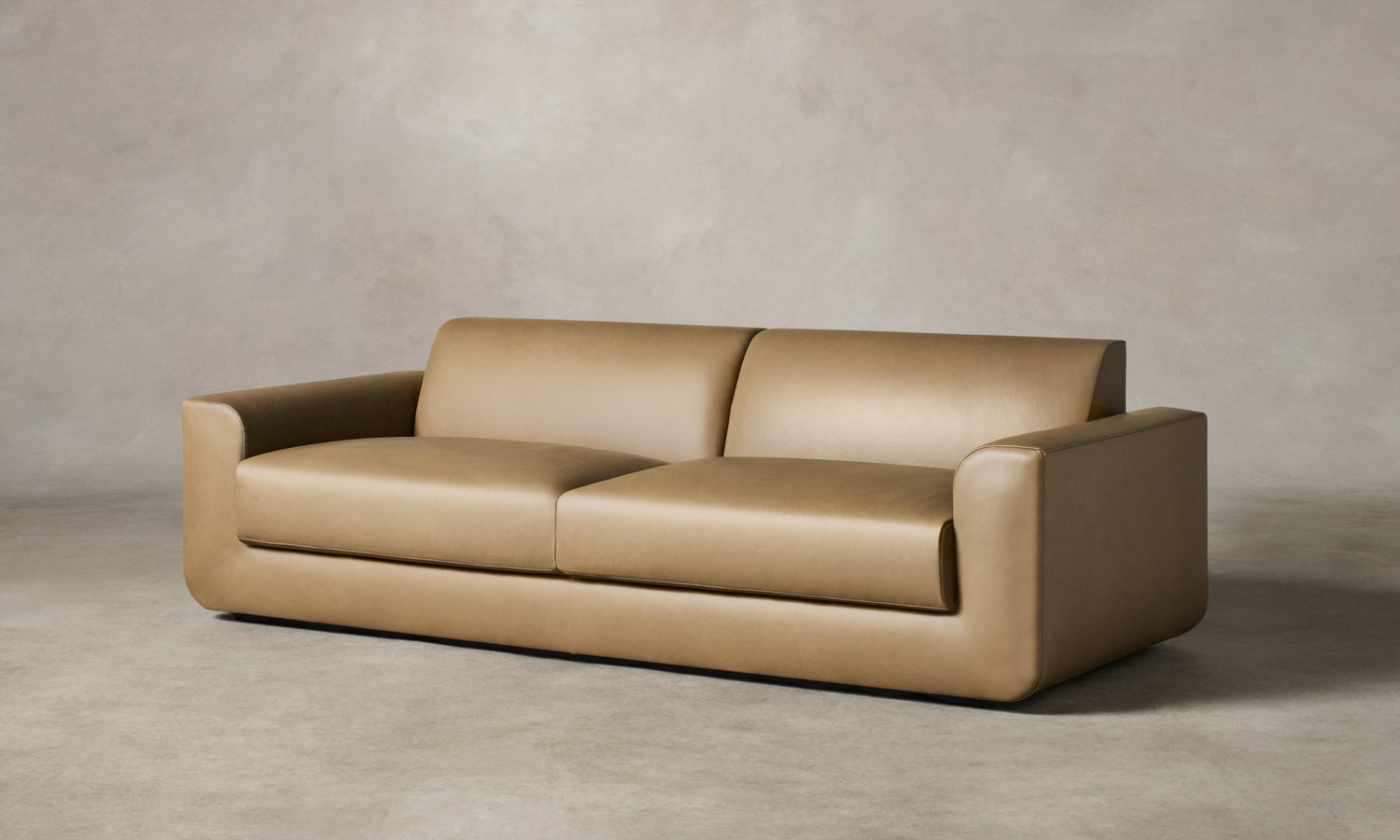 With weighty proportions and rounded curves, the Marcello Sofa evokes Italian modernist silhouettes from the 1970s. It features a deep, low-lying seat and soft cushions for enveloping comfort. Handcrafted in North Carolina.