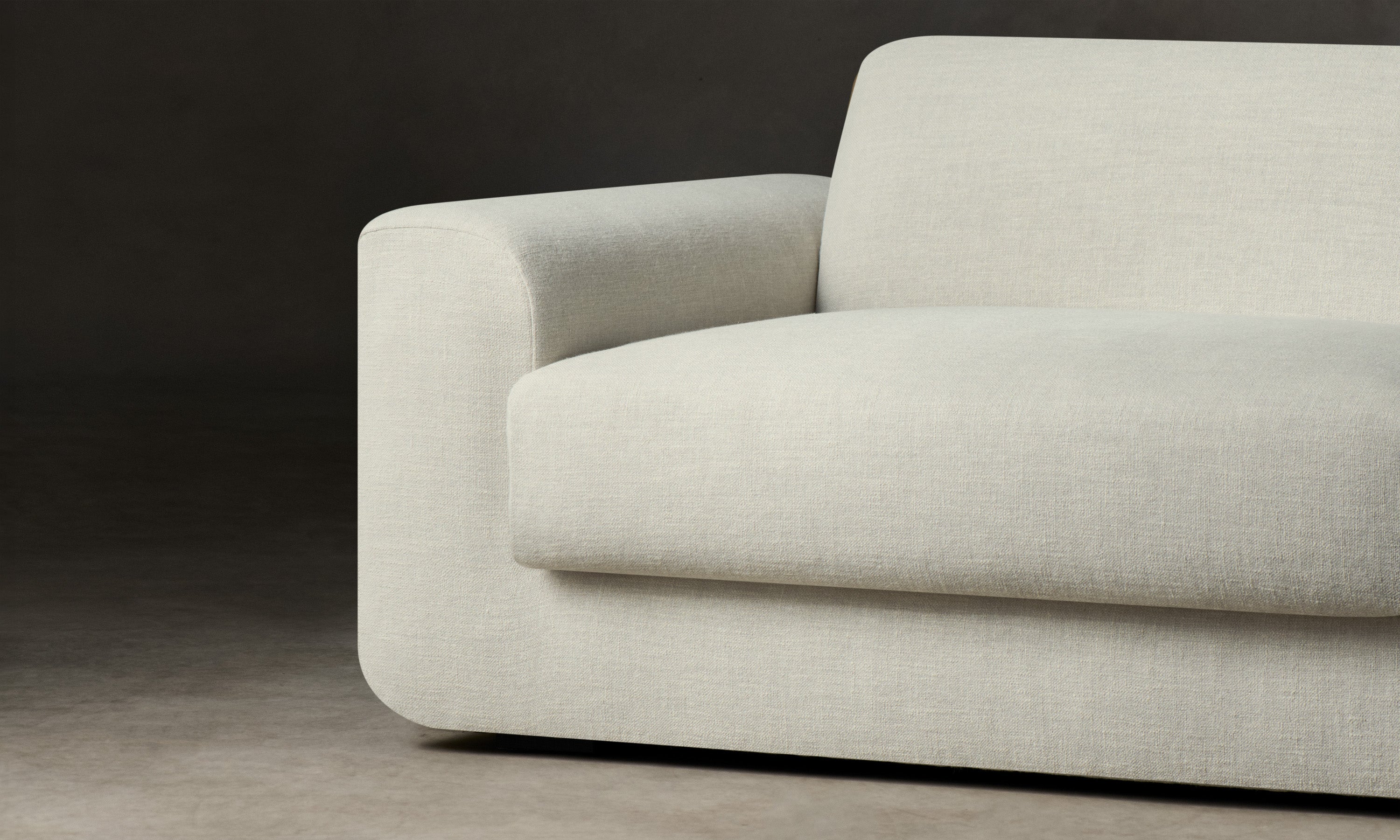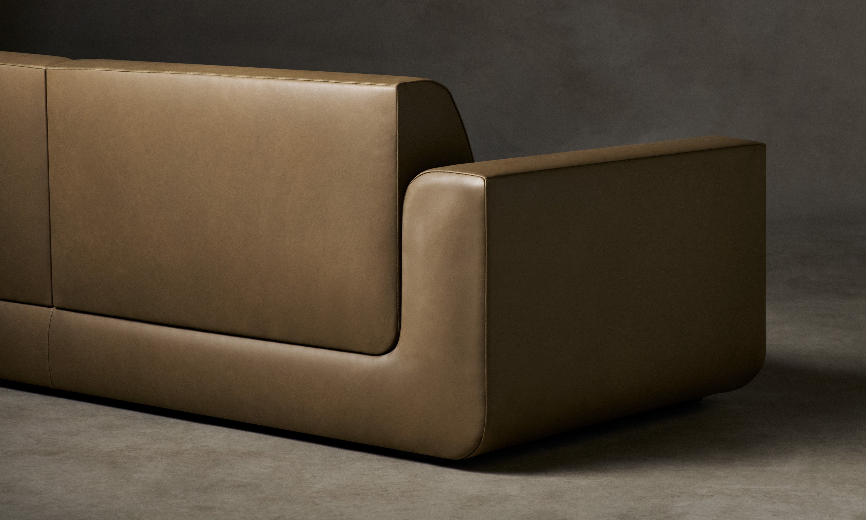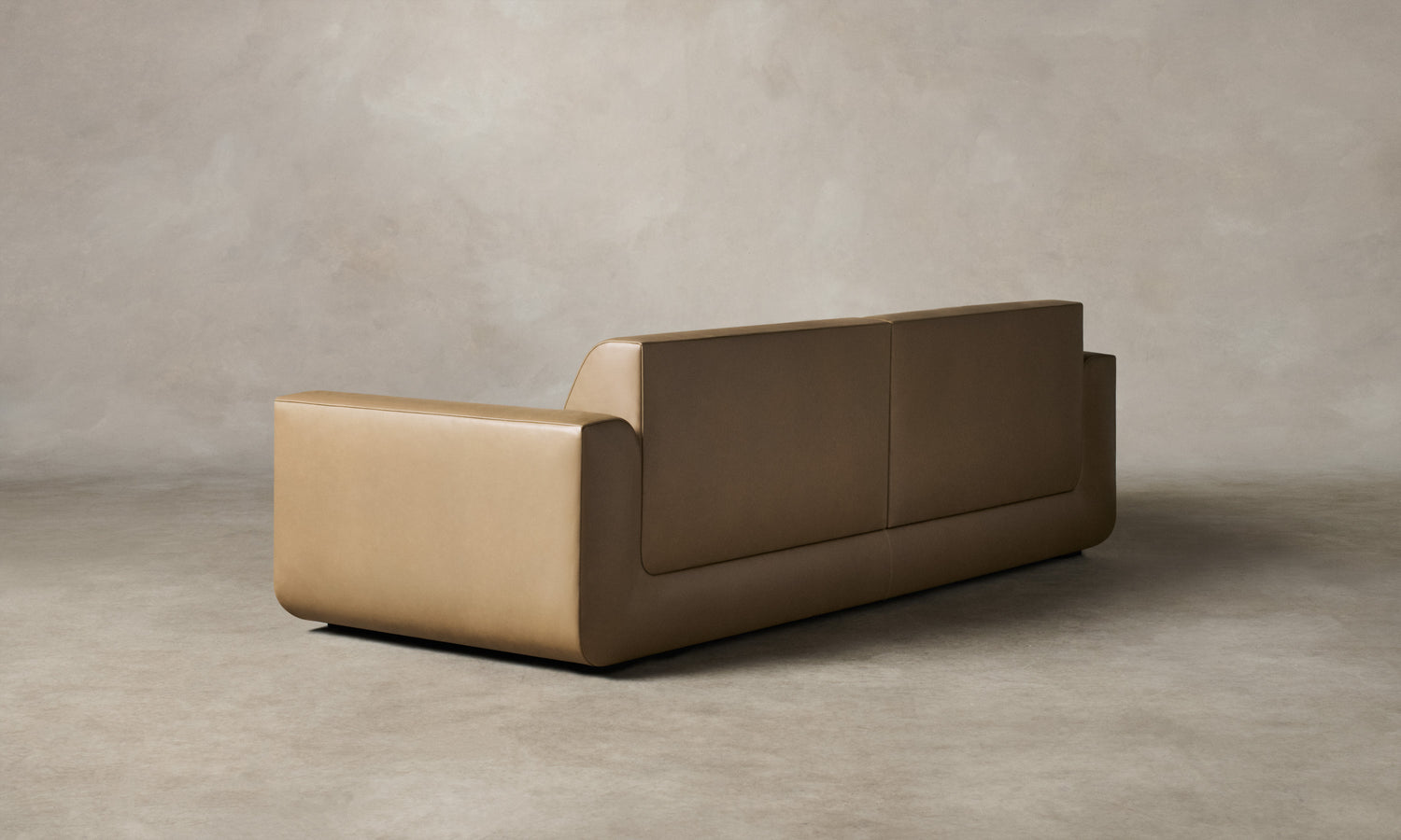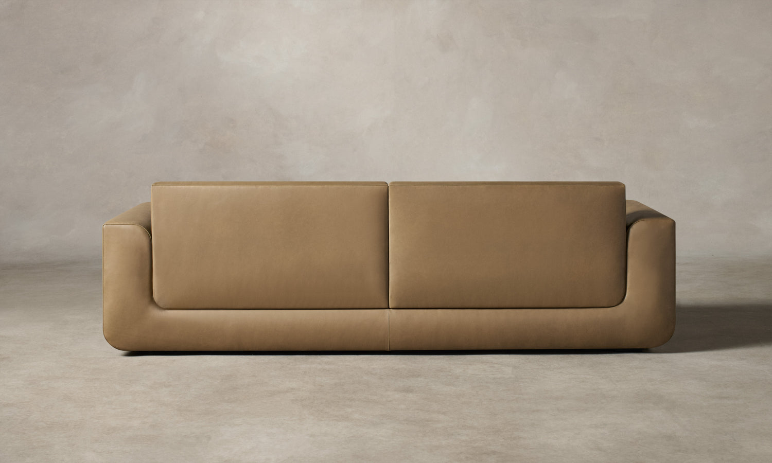 With weighty proportions and rounded curves, the Marcello Sofa evokes Italian modernist silhouettes from the 1970s. It features a deep, low-lying seat and soft cushions for enveloping comfort. Handcrafted in North Carolina.