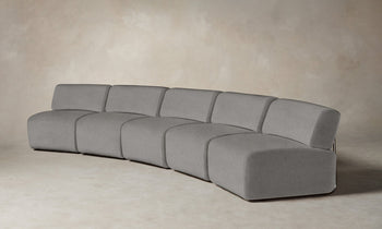 The Miles Modular Sectional is a bold articulation of modernist design influences. Resting upon a polished chrome frame, its voluminous seat cushions come together into a beautiful curved silhouette. Handcrafted in North Carolina.