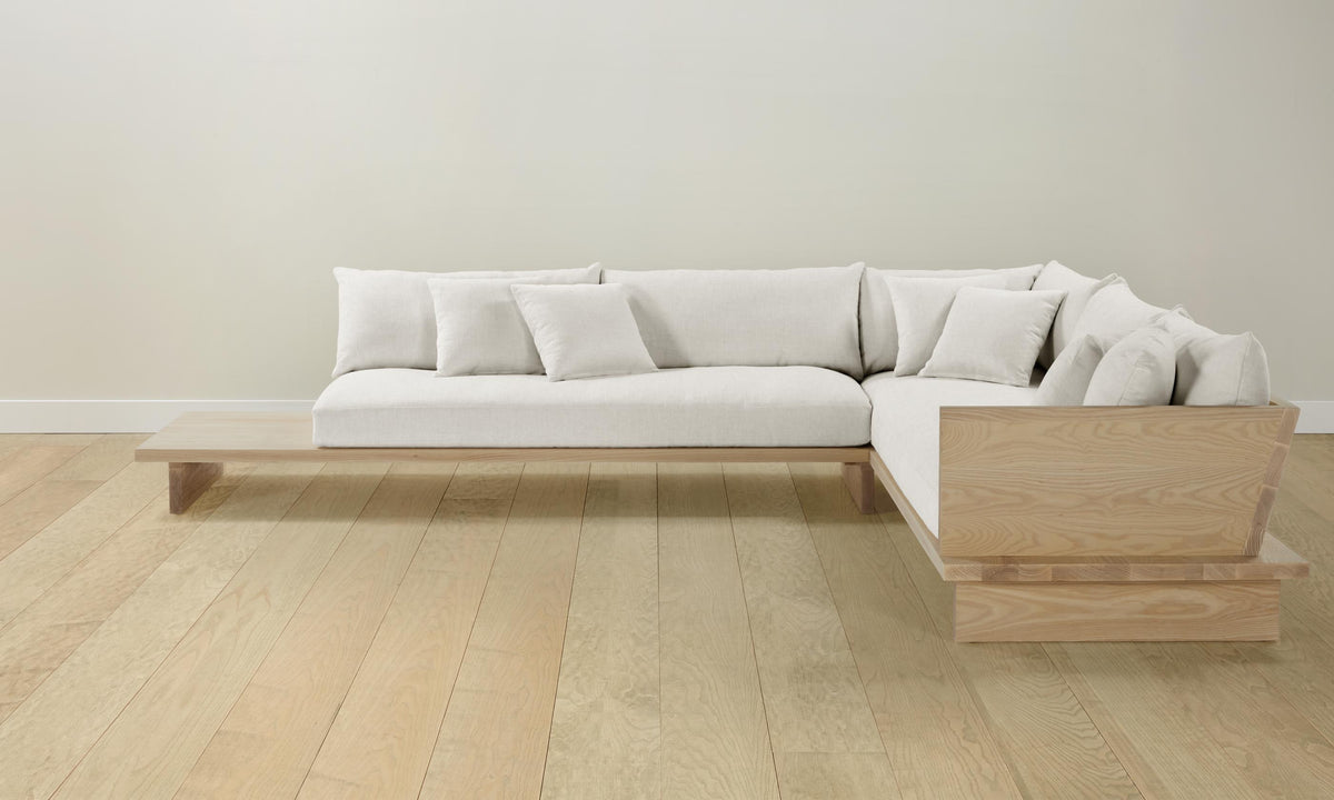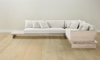 From the woodwork to the tailoring, every element of the Muir Sectional is a display of exquisite artisanship. Its angular frame extends beyond the seat cushion, allowing space for decorative objects or necessities. Handcrafted in North Carolina.