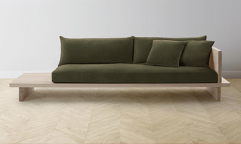 From the woodwork to the tailoring, every element of the Muir Sofa is a display of exquisite artisanship. Its angular frame extends beyond the seat cushion, allowing space for decorative objects or necessities. Handcrafted in North Carolina.