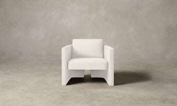 The Separa Chair is an architectural statement piece defined by a dramatic split at the back. It has wraparound arms and a waterfall seat complete with tight upholstery. Handcrafted in North Carolina.