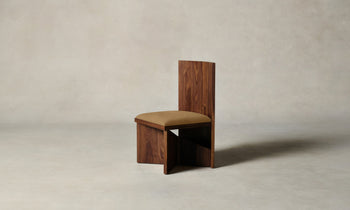 The Venice Chair is a study in contrasts. The softness of its curved back and upholstered seat is balanced by its angular base, where a void welcomes conversation between light and shadow. Handcrafted at a family-owned workroom in upstate New York.