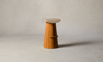 A contemporary interpretation of a classic saddle stool, the Weston has a contoured seat and sculptural base with a slit down the center that welcomes a whisper of light to stream through. Handcrafted at a family-owned workroom in upstate New York.